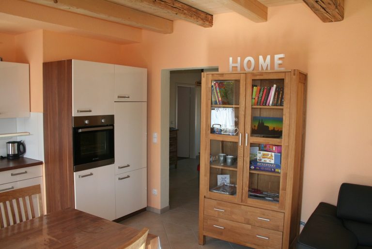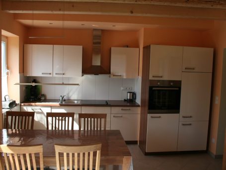 Unsere Küche ist umfangreich ausgestattet - Sie finden dort: Kaffeemaschine und Pad-Maschine, Backofen, Mikrowelle, Toaster, Rührgerät, Küchenwaage und Spülmaschine.