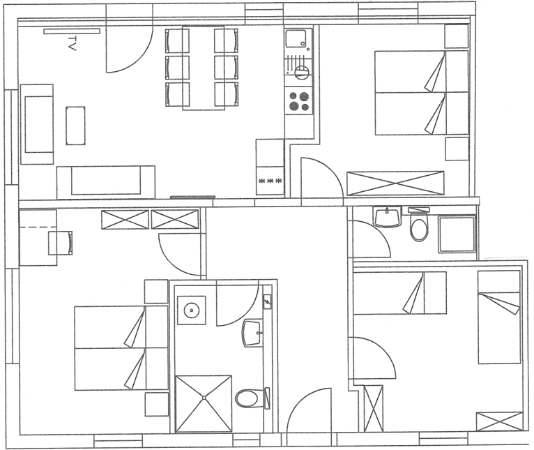 in unserem Ferienhaus stehen Ihnen ein Wohn-Essbereich mit Küchenzeile, drei Schlafräume, zwei Bäder und ein großzügiger Flur zur Verfügung.